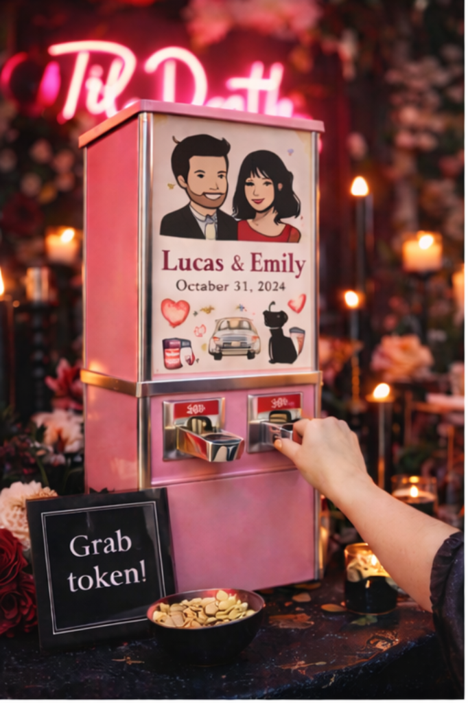Booking Vending Vows is simple , choose your machine, customize your favors, and we handle the rest.